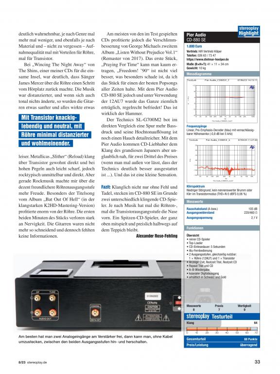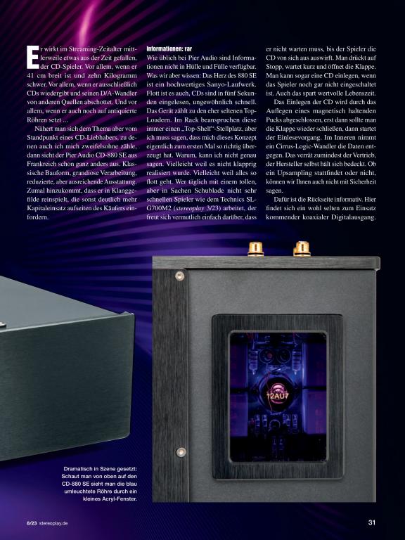 Pier Audio CD-880 SE - stereoplay HIGHLIGHT für Doppeltes High End + Klangtipp von AUDIO