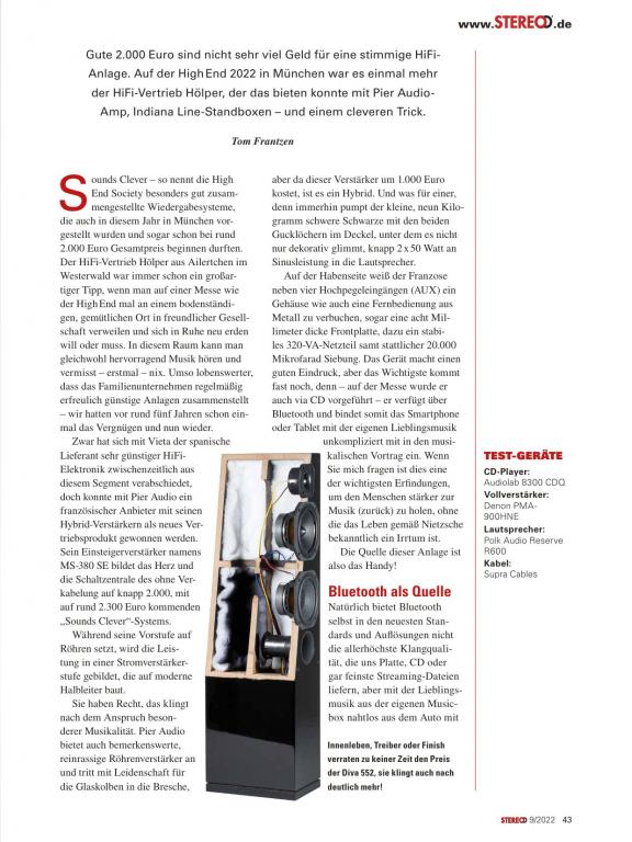 Neben ausgezeichneten Röhrenvollverstärkern überzeugen seit einiger Zeit wertige Hybridvollverstärker von PIER AUDIO aus Frankreich mit ihrer Kombination aus Röhrenvorstufe und Transistorendstufe, die bekannte Stärken beider Technologien vereinen und dabei wahlweise noch mit moderner Bluetooth Technik glänzen, vermehrt die Hörerschaft auch in Deutschland.