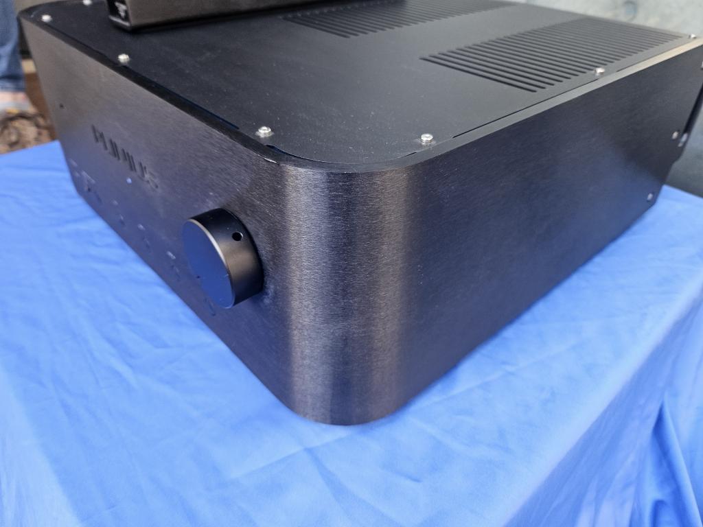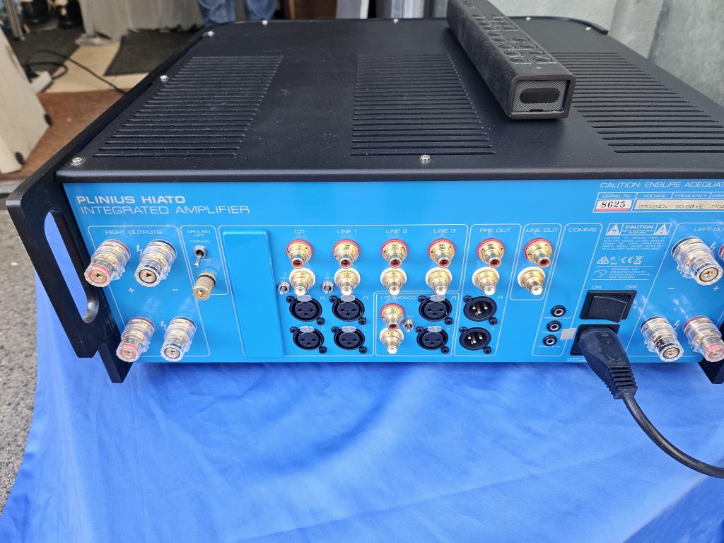 Zwei XLR-Eingänge, 4 x Cinch; Pre out XLR/Cinch; Heimkinoeingang Cinch/XLR; Tape out; Phonomodul optional; Bi-Wiring-Terminal; Ground Lift; Triggeranschluss; Fernbedienung