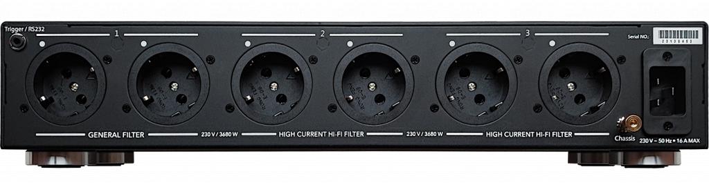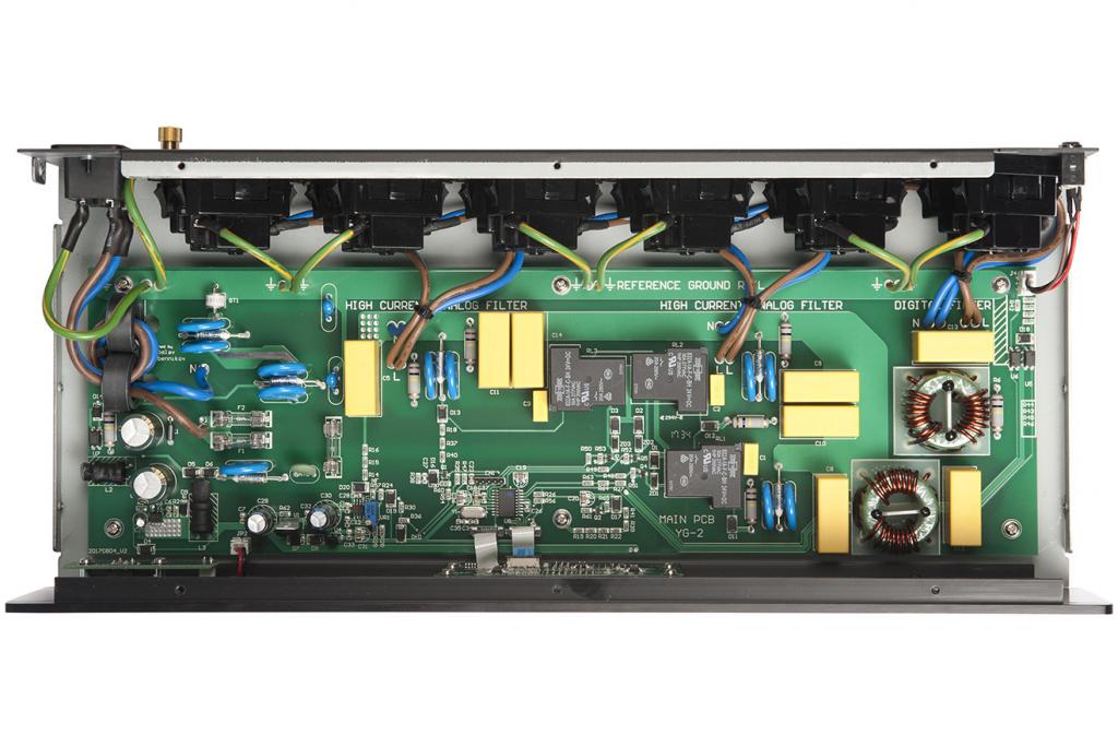 Owing to its compact sized small case (with a height of just 80 mm and a depth of only 185 mm, the YG-2 fits into almost any system, offers 6 outlet sockets – yet offers the same power capacity as its big brother, the YG-1.