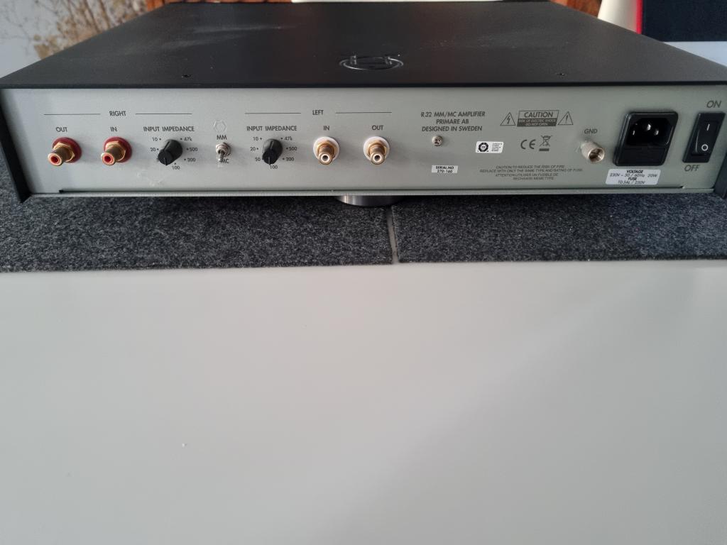 Zum Verkauf steht ein Primare R32 Phono-Vorverstärker (MM/MC) aus Erstbesitz, Kauf im Februar 2013 bei deutschem Fachhandel. Das Gerät war ausschließlich für die Wiedergabe von Mono-Schallplatten im Einsatz und wurde insgesamt nur sehr selten genutzt.