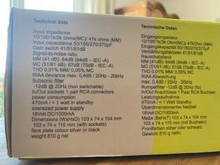 In perfect condition is this specially tuned Pro-Ject Tube Box S, designed for MC or MM cartridges. There are 2 spare unused special tubes, as well as all accessories and paperwork. This version is the more expensive version of the original (specially tuned by S.W, more below) and is certainly a very high performer, comparing very well to much more expensive options. There are several settings on the back to get the best setting for your individual cartridge and the instructions (DE and EN) explain how to do this effectively for best performance.