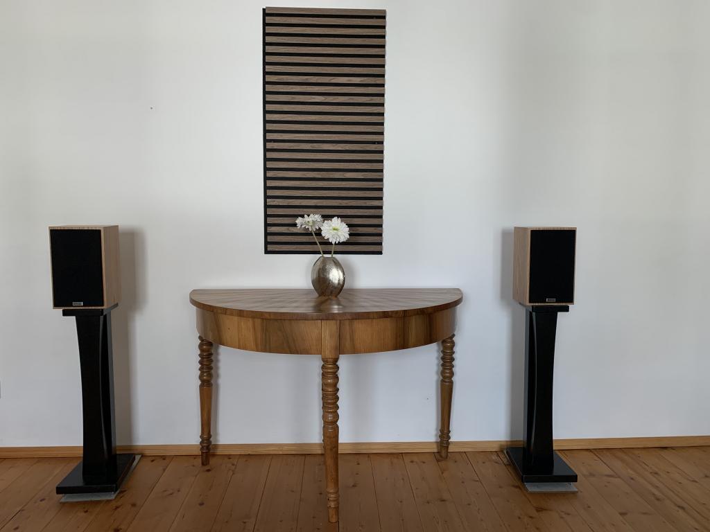 Die Tablette ist als einer der zu bezeichnenden BBC Monitoren und noch immer eine klanglich musikalische Ansage. Durch die geschlossene Konstruktion und hohe Impedanz von 10 Ohm kann die Tablette 10 auch mit kleineren Röhrenverstärkern sehr überzeugend betrieben werden. Für kleinere aber auch mittlere Räume eine Problemlösung in akustischer Hinsicht