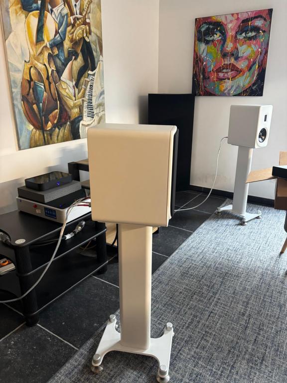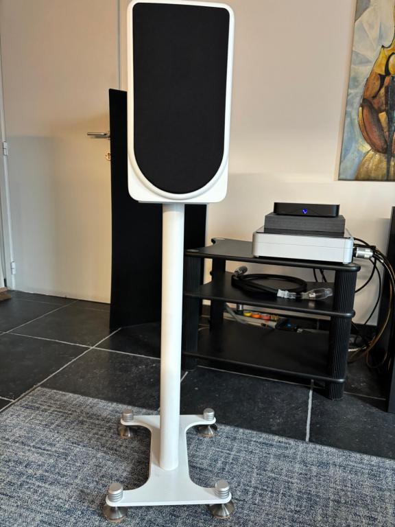 Do not miss the opportunity to acquire a pair of high-end loudspeakers in pristine condition, complete with matching stands in the elegant Satin White finish. The PS Audio Aspen FR5 is proof that exceptional sound does not require large dimensions, delivering surprisingly deep and spacious audio for its size.