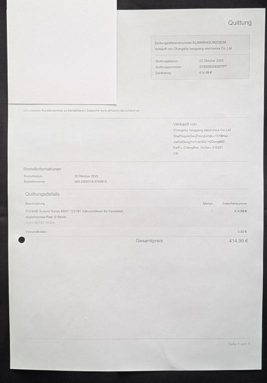 Hiermit verkaufe ich aus meiner Röhrensammlung 1 Paar neuwertige PSVANE 6SN7 Summit. Die Werksgematchten Röhren sind erst 4 Monate jung und gerade erst eingespielt.