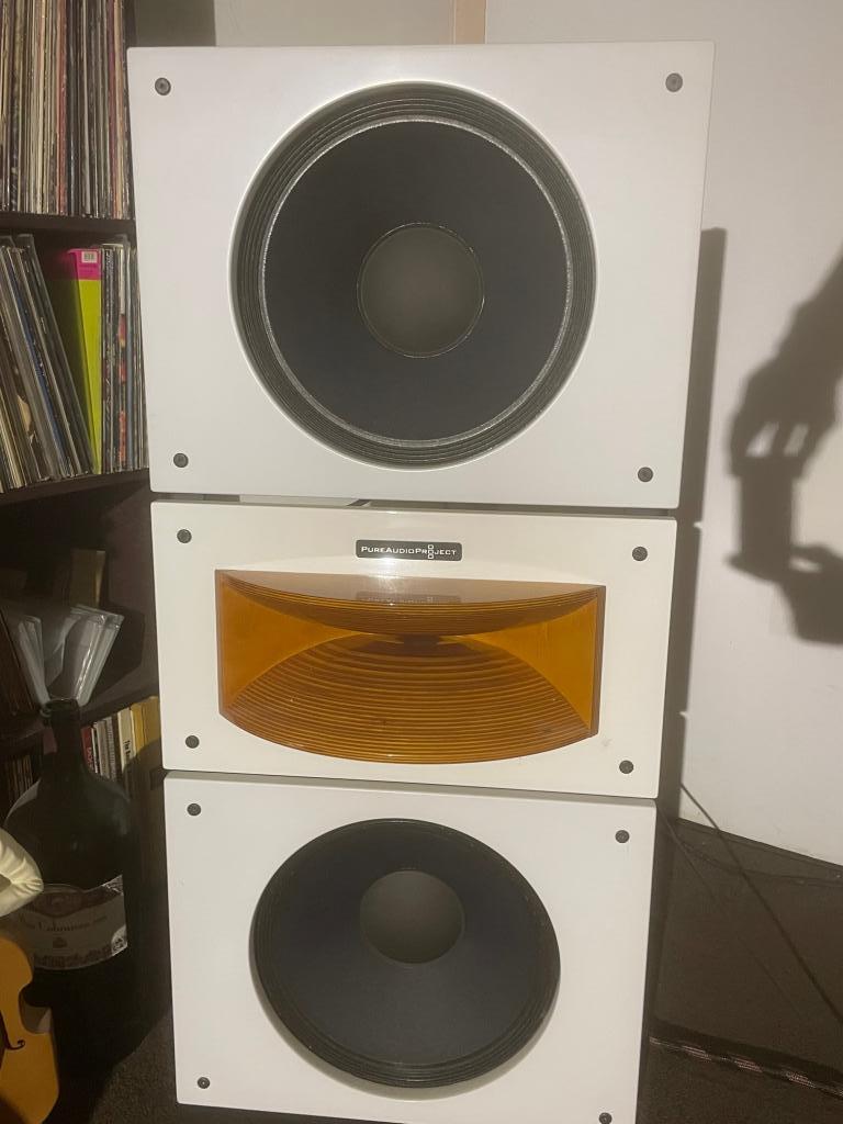For sale is a pair without center speaker. This is a special design which is not part of the companies program. Price for this: 2000 Euro. All speakers in excellent condition.