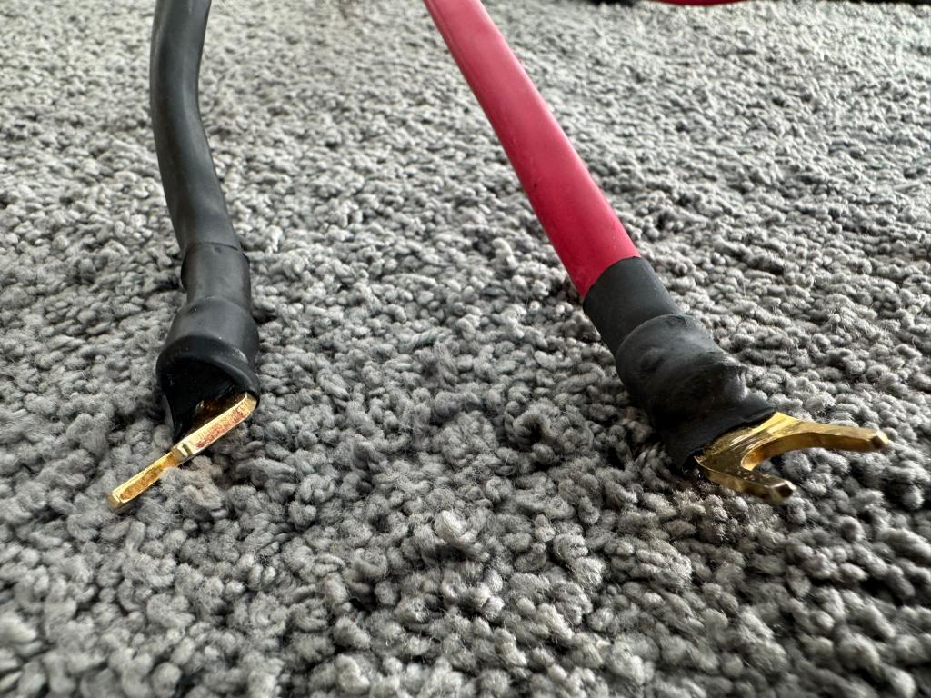 Auf der Verstärkerseite sind Kabelschuhe verbaut und auf der Lautsprecherseite Bananas.