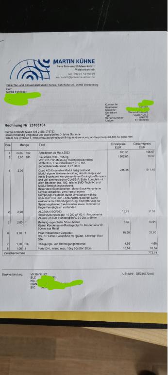 Diese wurde durch den "Meister der Quad 405-Modifikation" selbst revisioniert. In der maximalen Ausbaustufe modifziert, siehe hierzu: https://ftbw.de/workshop/hifi-highend-service/quad-fix-price/quad-405-fix-price.html