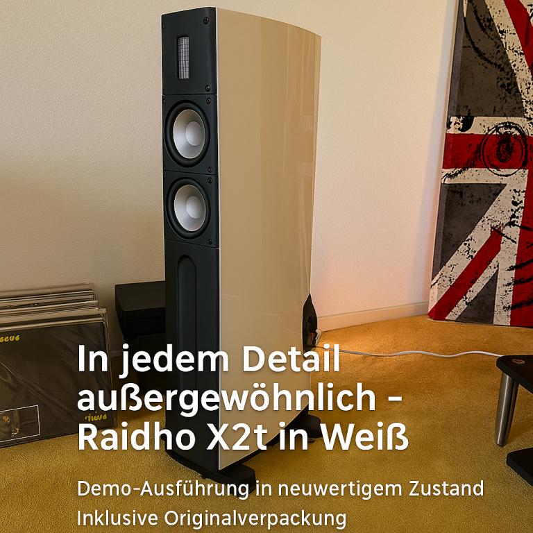 Zum Verkauf steht ein Paar Raidho X2t in der eleganten Ausführung Weiß Hochglanz. Es handelt sich um unsere Vorführlautsprecher, die sich in absolutem Neuzustand befinden – optisch wie technisch makellos.