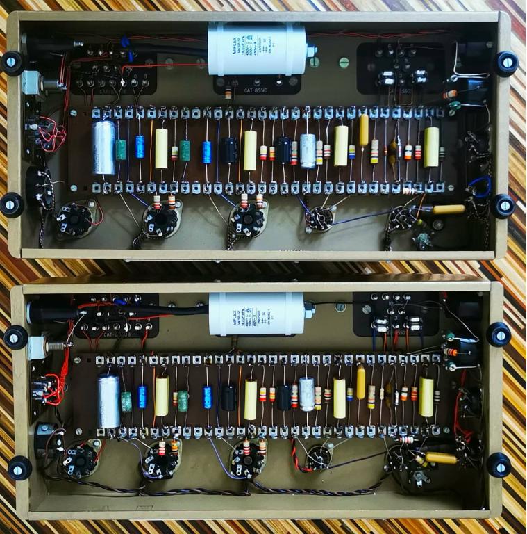 Die Amps sind weitestgehend in Originalzustand, die Elkos wurden natürlich altersbedingt ersetzt durch möglichst ähnliche Typen aus aktueller Produktion.