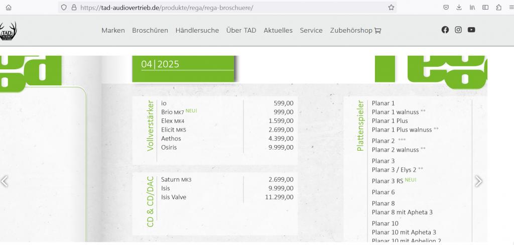 Vertrieb: https://tad-audiovertrieb.de/produkte/rega/