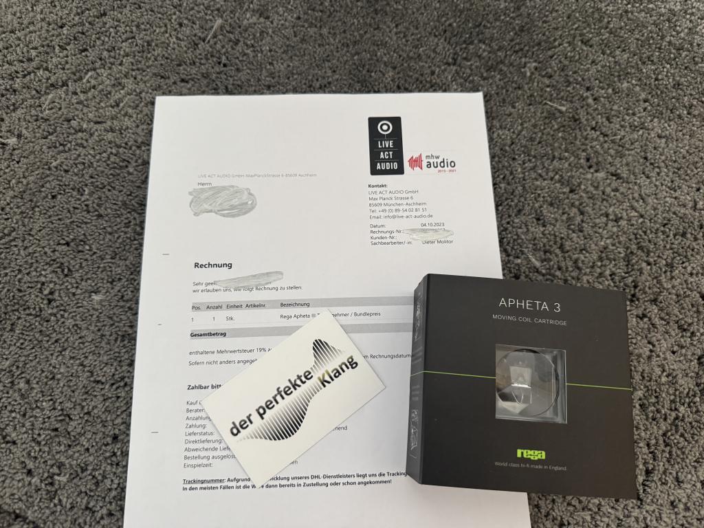Im Lieferumfang enthalten ist: Rega Apheta III und die originale Verpackung.