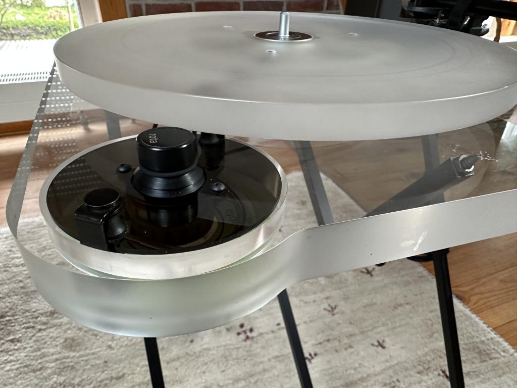Vom Plattenteller mechanisch getrennt läuft der Antriebsteller auf einem eigenen unabhängigen Lager.