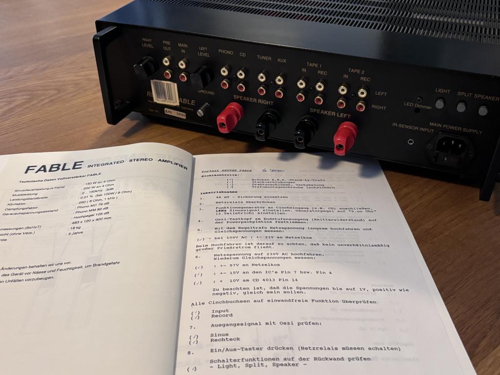 Das Gerät befindet sich technisch in voll funktionsfähigem Zustand und überzeugt mit seiner kraftvollen, souveränen und zugleich sehr feinen Klangcharakteristik. Der Fable spielt kontrolliert, detailreich und mit beeindruckender Dynamik auch an anspruchsvollen Lautsprechern.