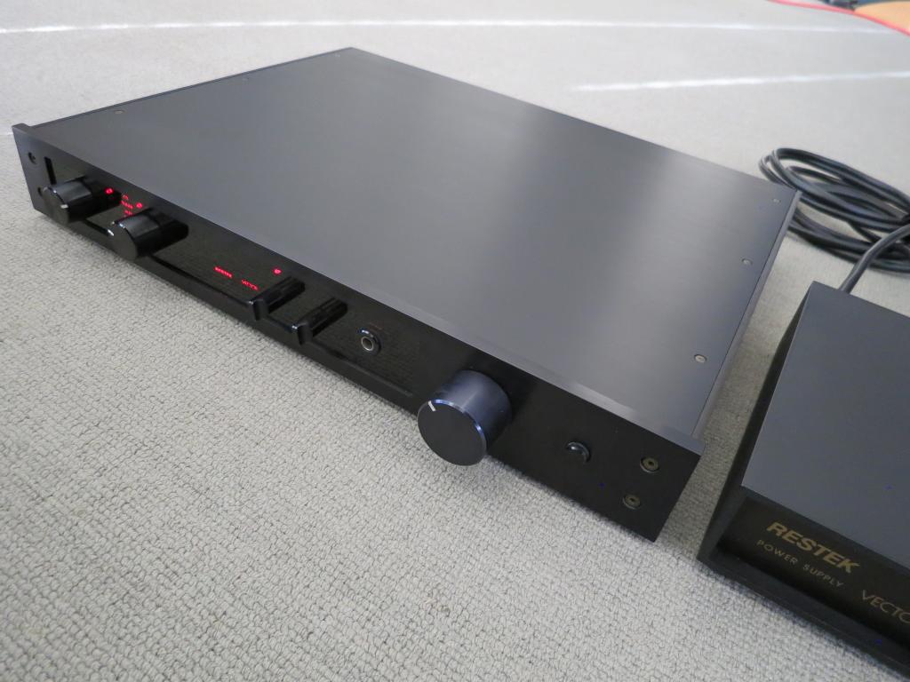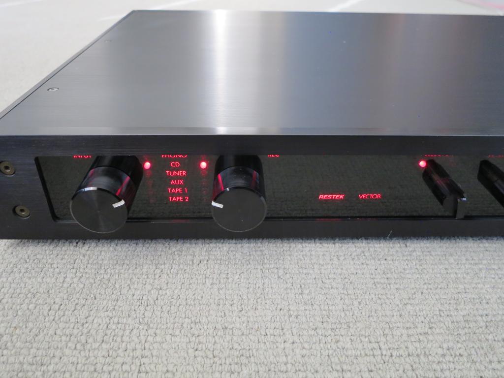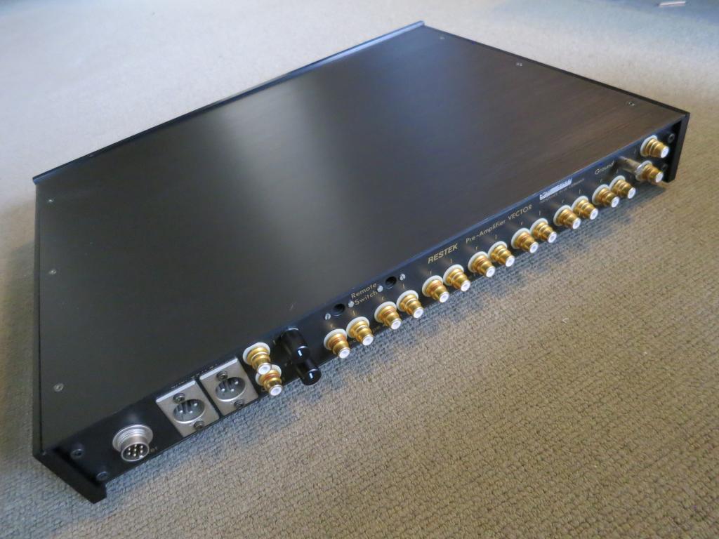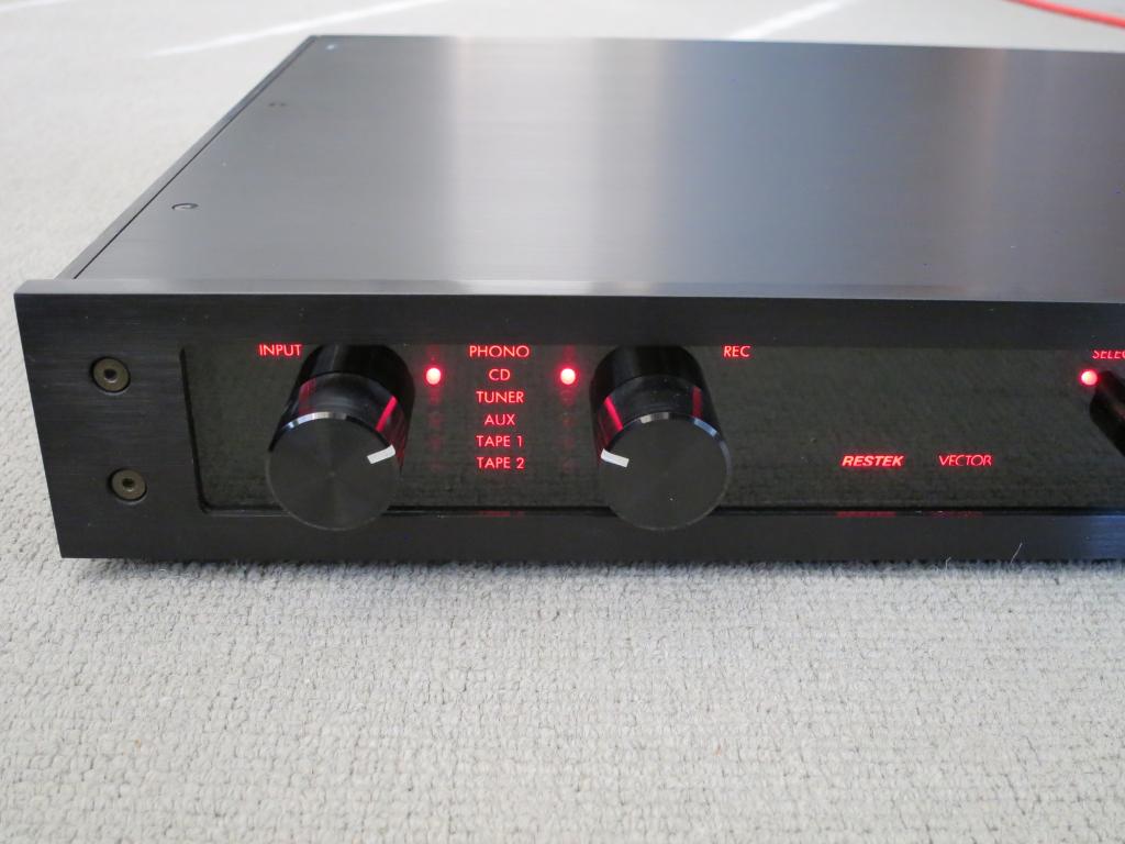 Sehr hochwertig verarbeiteter High End-Vorverstärker. Technisch perfekt. Optisch neuwertig bis auf zwei minimale, kaum sichtbare Kratzer auf der Oberfläche. Absolut neutrales und sauberes Klangbild, das höchsten Ansprüchen genügt. Restek verzichtet bewußt auf Klangregler und unnötige Bauteile im Signalweg, um Verzerrungen zu vermeiden und die Klangqualität nicht zu beeinträchtigen. Hervorragender, rauschfreier Phonoeingang (MM, MC). Externes Netzteil zur Vermeidung von Störeinflüssen. Der Vector kann auch lange Kabel zu den Monoblöcken oder Aktivlautsprechern ohne Klangverlust betreiben.