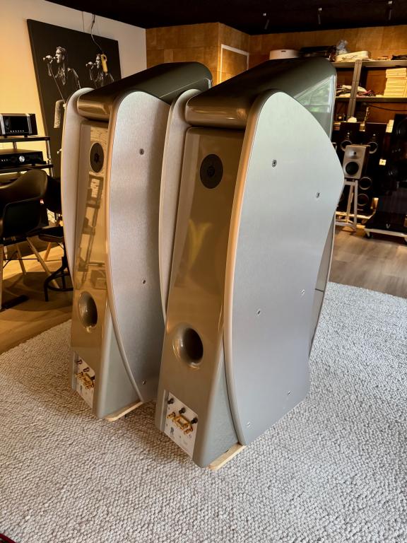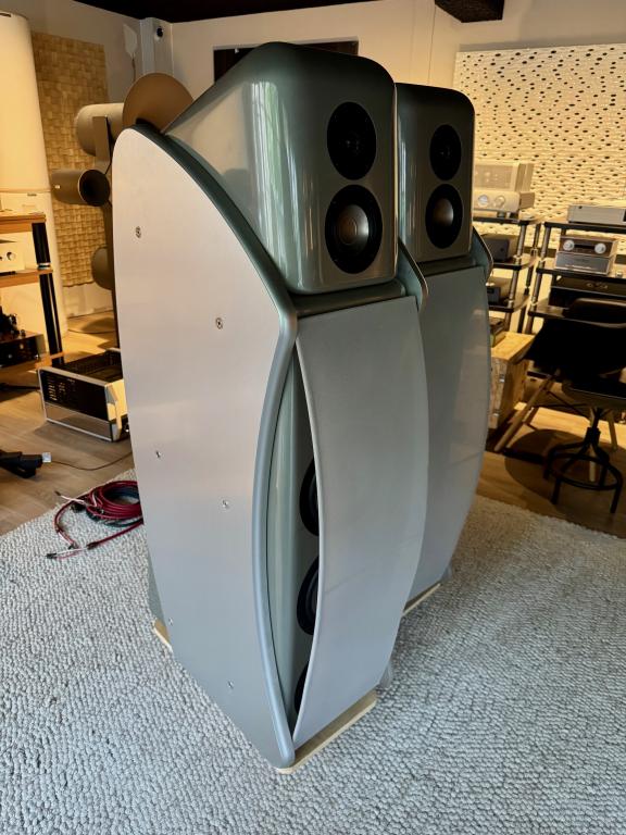 Trade in from a client on a new pair of loudspeakers. Both speakers are in very good condition and have been well taken care of. They are finished in full silver.