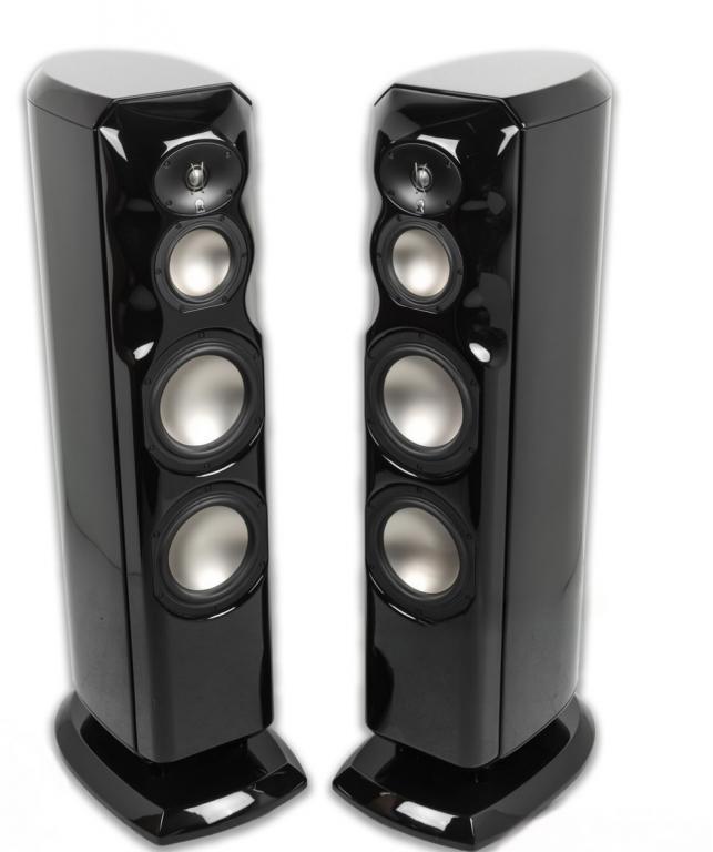 Die Revel Ultima Studio 2verfolgt einen ähnlichen Ansatz wie der der Salon 2 aber in einem wohnzimmertauglichen Paket. Es handelt sich hier um ein Drei-Wege System mit zwei 8-Zoll-Tieftönern, einem 5 ¼ Zoll-Mitteltonbereich und einem 1 Zoll Beryllium Hochtöner.