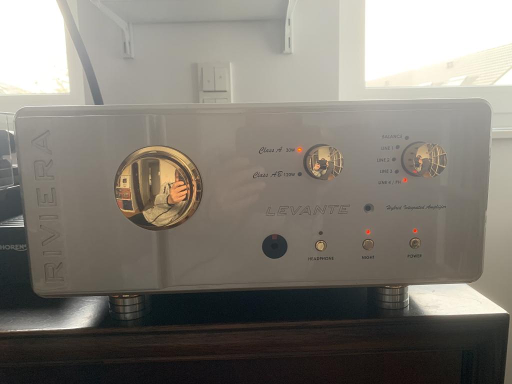 Der Levante ist ein Class A Verstärker, mit der Besonderheit im laufenden Betrieb auf Class A/B umschalten zu können (2x30 Watt in Class A, 2x120 Watt in Class A/B an 8 Ohm). Bei mir läuft er immer in Class A an Lautsprecher Audiovector Trapez RI.