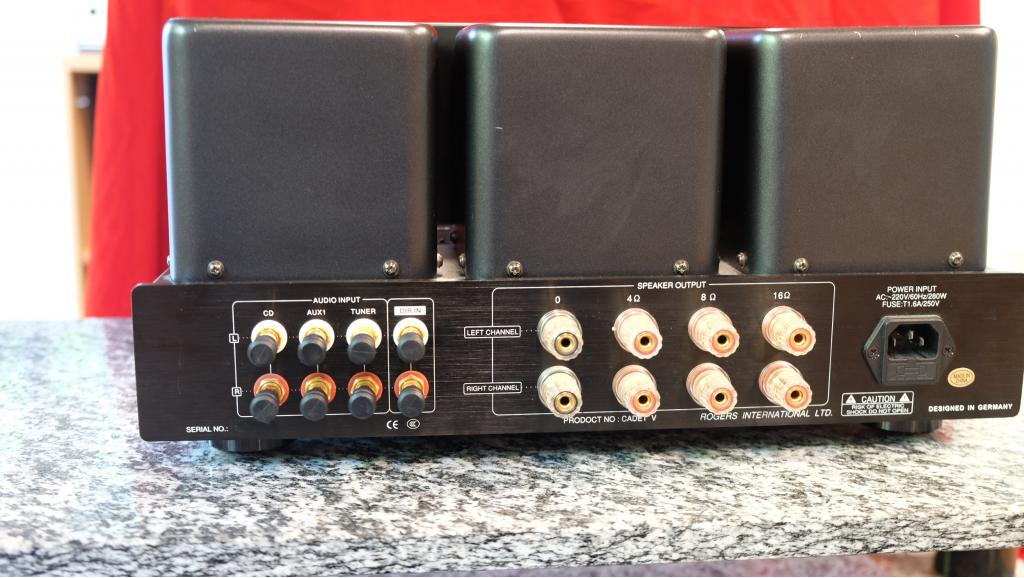 Der Rogers Cadet V Stereo-Vollverstärker mit KT88 Vakuumröhren richtet sich in erster Linie an Nutzer, die ein Gleichgewicht zwischen Leistung und Musikalität schätzen. Die Auswahl von 3 Ausgangsimpedanz Anschlüssen (4; 8; 16 Ohm) ermöglichen eine optimale Anpassung an die verschiedenartigsten Lautsprechersysteme.