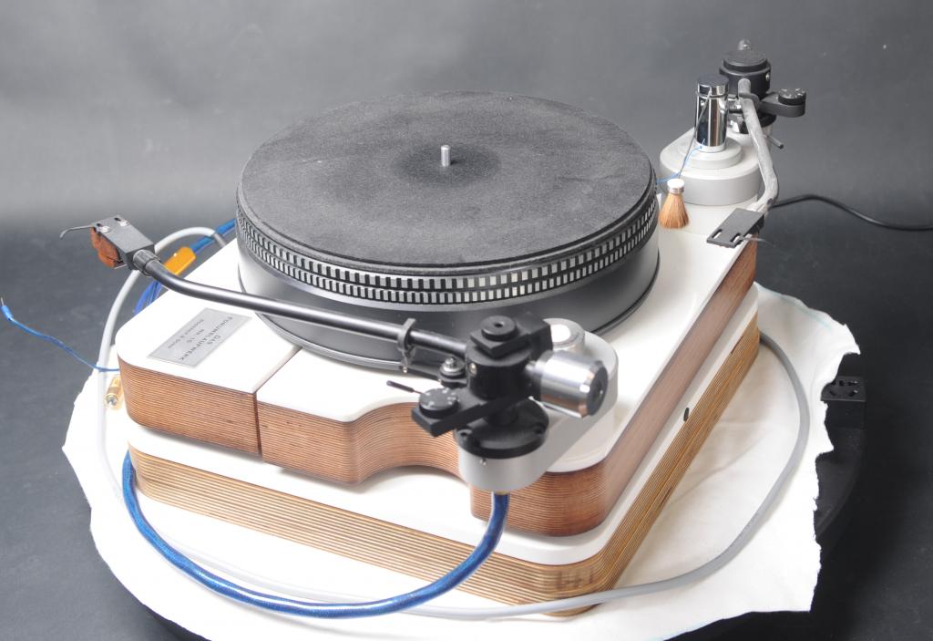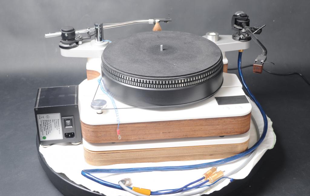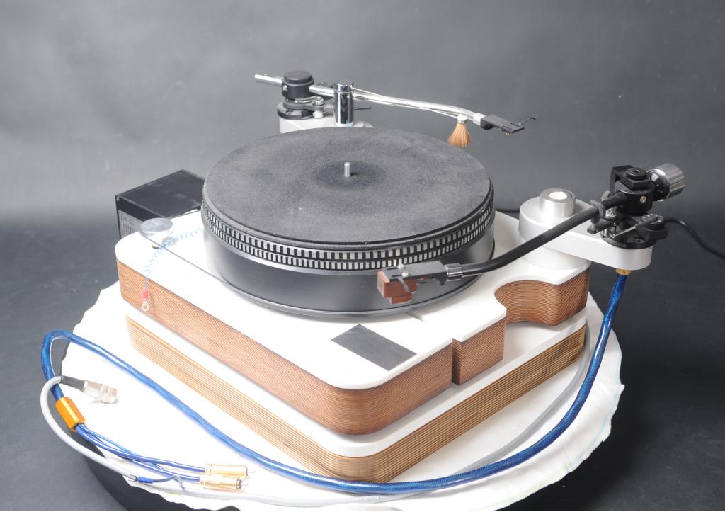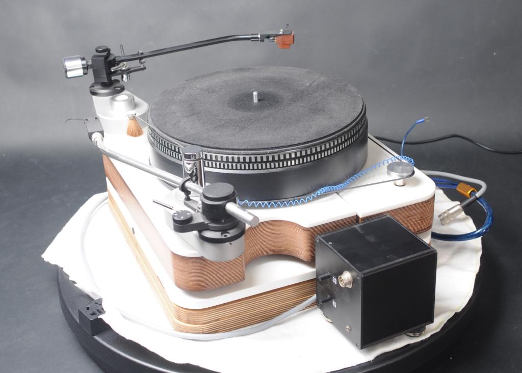 Das Forumslaufwerk ist konzipiert als großes Masselaufwerk und viele Anhänger gefunden, hier in der Referenz Version mit 2. Platte und einer Marmor-Basis (nicht auf Bild) sowie 2 Stück 12" Auslegern und den gezeigten Armen.