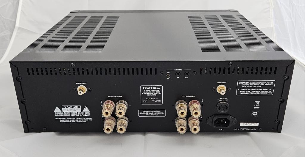 Rotel RB-1582 (original version, NOT MkII), black (Class AB, oversized power supply with toroidal transformer).