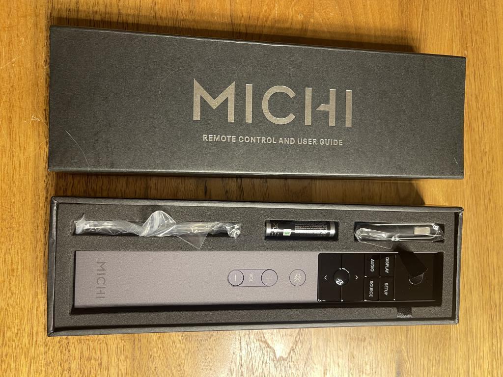 Die Fernbedienung ist ungebraucht, ebenso wie die Kabel.