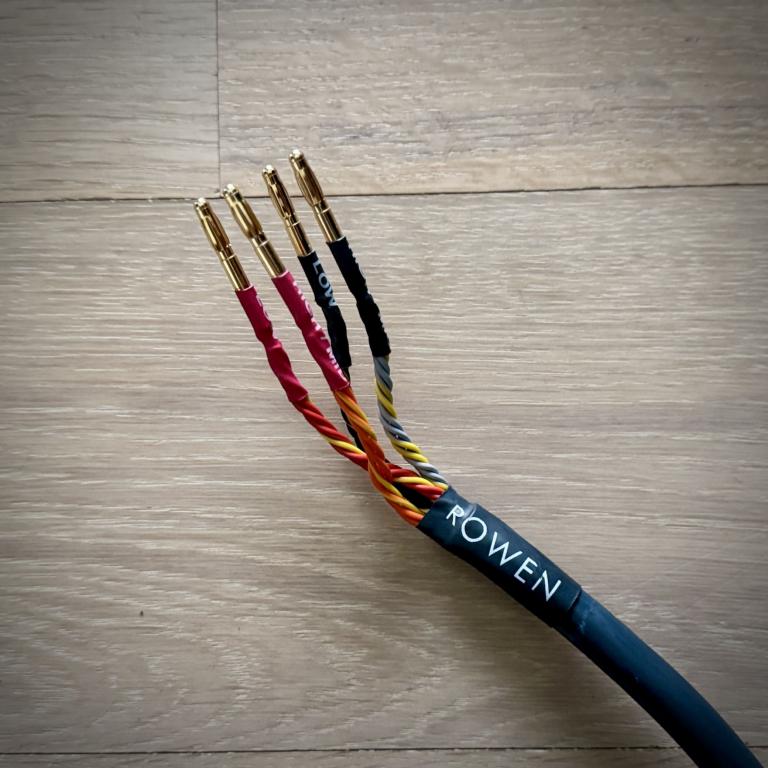 Im Preis enthalten sind zwei Rowen Absolute Lautsprecher-Kabel à ca. 2.5m (vorbereitet für den Bi-Active Betrieb) und die sechs Silent-Stands.
