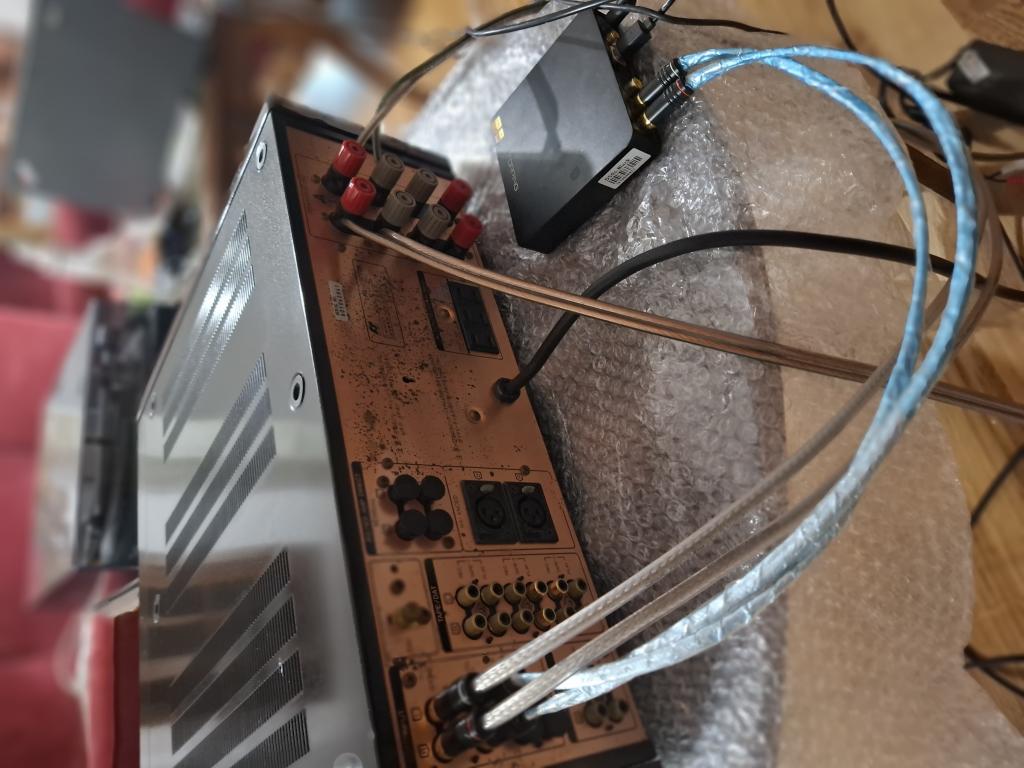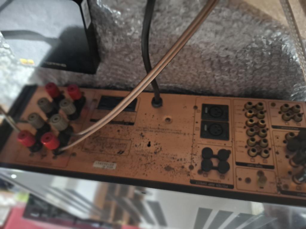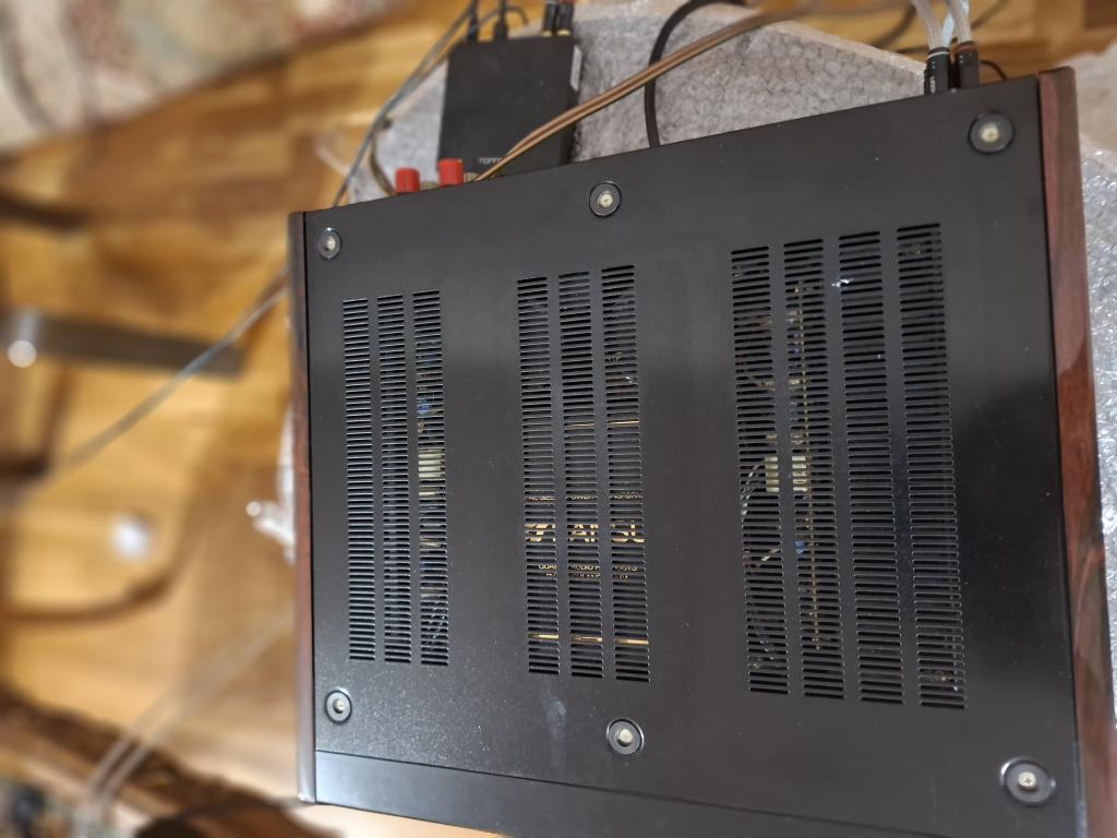 Amplificatorul a fost cumparat din Japan , opereaza la 100v si functioneaza fara probleme. Nu are zgarieturi sau murdarie, singurele semne de imbatranire fiind mici pete negre pe partea din spate. Singura interventie a fost curatirea contactelor. A fost lansat in 1990 , a costat 250.000 yeni si face parte din categoria produselor de top Sansui.