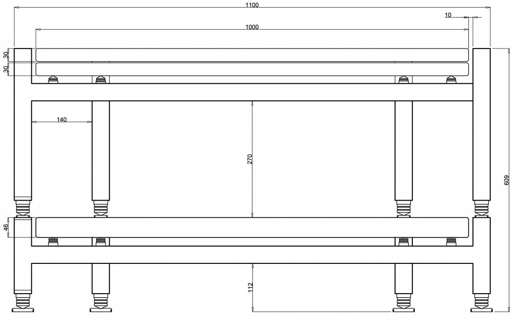 An anti-vibration sectional, table for four audio devices. The table is two-level, four-legged with a trapezoid base. The frame is made of high-strength structural steel.