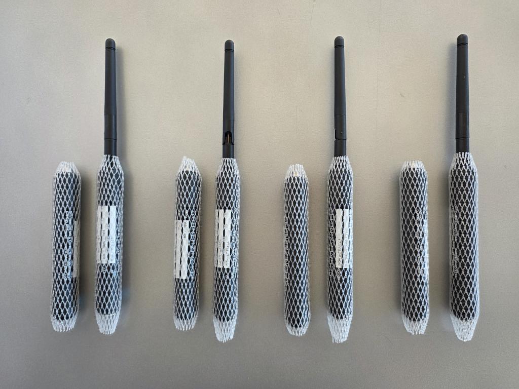 Das 8er-Set besteht aus 4 Giga Satelliten inkl. Master sowie 4 Repeatern zur Leistungsverstärkung und 8 Netzteilen für das kurze Aufladen im Abstand von 8 bis 12 Wochen.