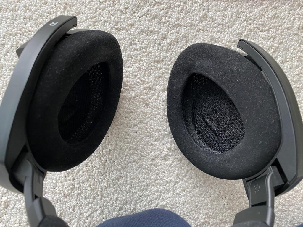 Die Velourpolster an den Hörmuscheln weisen die üblichen Druckstellen auf, die bekanntermaßen bereits nach wenigem Tragen in Erscheinung treten. Wenig benutzt (ca. 50 Std.)