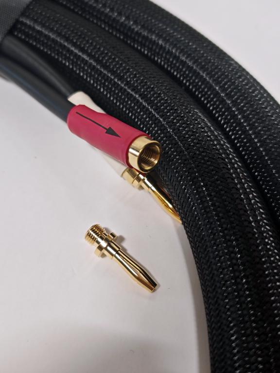Shunyata Python ZiTron speaker cable, in very good condition, with an interchangeable termination system (banana, spade, and BFA banana terminations included). Length: 2 × 2.5 m (Exact length of 2.7 m from connector end to connector end)