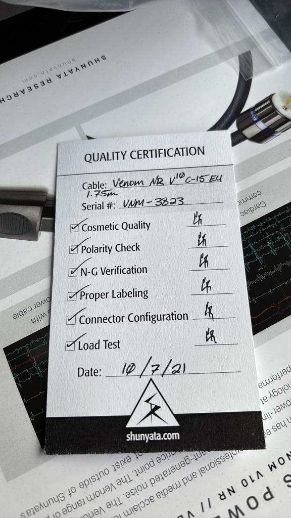 Shunyata Research Venom NR-V10 C15 EU 1,75m (invoice 08/2023)