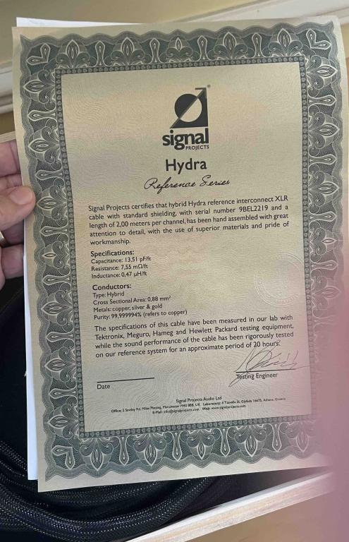 “...Hydra interconnects can be the means you were looking for to release the original abilities of your devices, and helping you discover the spark that you didn't know your system was having. Thanks to my current financial situation, I cannot make my audiophile dreams come true. However, the Hydra of Signal Projects impressed me so deeply that entered straight to my “must have” list. And who knows… the economic panorama might change one day”
