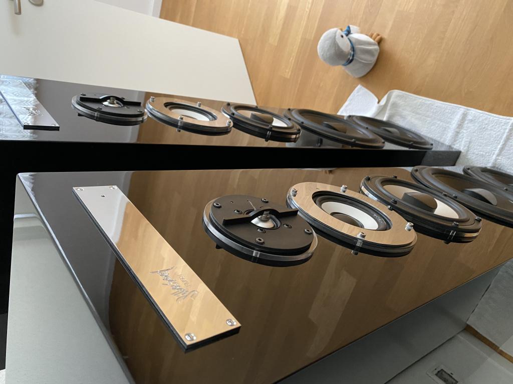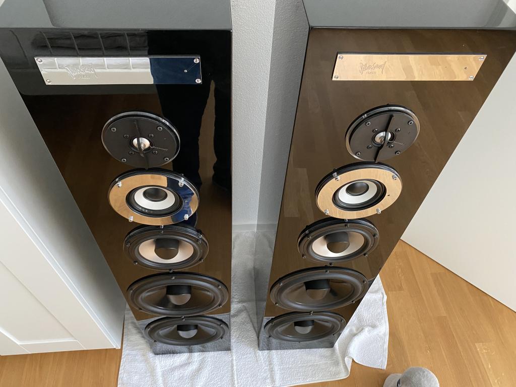 Ich verkaufe meine 4-Wege Lautsprecher von Silbersand in Klavierlack schwarz. Die FM 501 MK2 sind vollaktiv und geregelt. Technische Details finden Sie im Netz zuhauf, Lobeshymnen darauf sowieso, weshalb ich an dieser Stelle darauf verzichten möchte. Die Lautsprecher wurden am 29.09. 2012 bei der aktiven Hifibörse in Zweibrücken gekauft, sind aber einige Jahre älter. Sie sind in hervorragendem Zustand, haben keine Lackabplatzer und funktionell in tadellosem Zustand. Die Ansteuerung erfolgt über ein 4m langes Kabel, was mit beigelegt ist. Besser ist natürlich eine symmetrische Ansteuerung. Die Dinger sind schwer, über 70kilo und da keine OVP mehr vorhanden ist, ist Abholung erwünscht, was den Vorteil hat, dass man gleich die Funktion überprüfen kann. Für Interessenten sei gesagt, wir befinden uns mitten in Hessen.