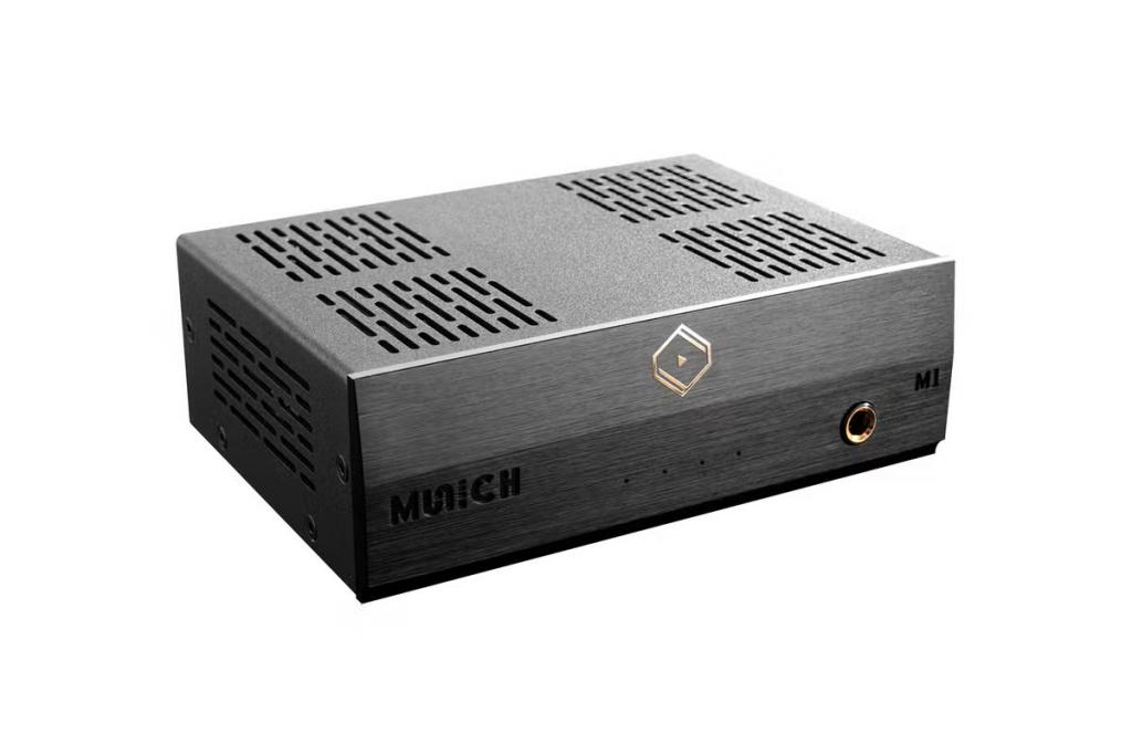 Die umfassenden Anschlussmöglichkeiten des Munich M1 umfassen AES/EBU, I2S, Koaxial und USB-Audio für externe DACs, Cinch (L+R) für Aktivlautsprecher sowie eine 6,35 mm Kopfhörerbuchse. Darüber hinaus bietet er USB 3.0 und USB 2.0 für zusätzlichen Speicherplatz sowie M-IO und M-LINK für den Zugriff auf Peripheriegeräte. Eine Gigabit-Ethernet-Schnittstelle ermöglicht die Verbindung mit einem Netzwerk-Switch oder NAS.