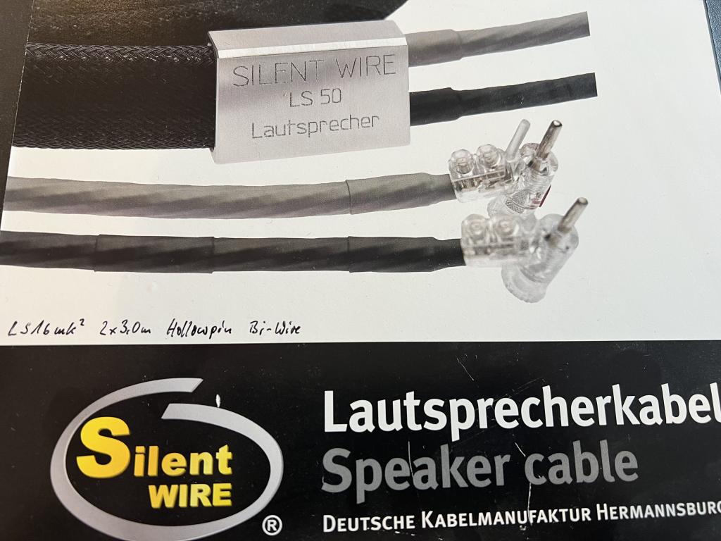 Biete ein Lautsprecherkabel von Silent Wire LS16 MKII in 2x3m bi wire mit Bananas an.Top-Zustand mit Originalkoffer und Zertifikat von Silent Wire.(Biete separat noch ein NF 16 in 0,8m mit WBT 0110 CU an)