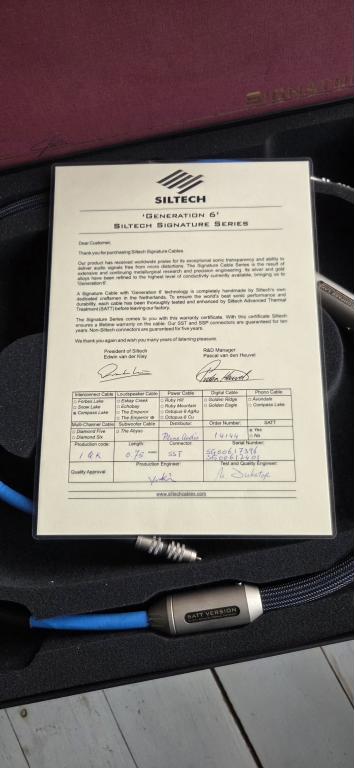 I'm selling Siltech Compass Lake G6 Signature SATT high-end RCA interconnect cables (0.75 m).