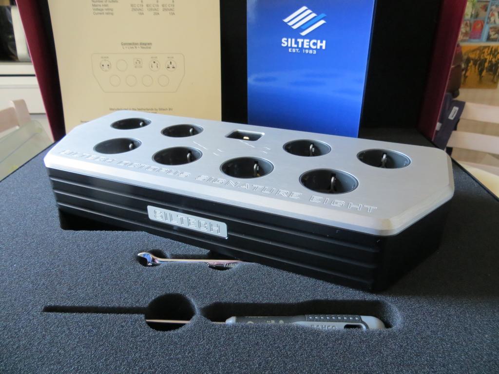 Siltech’s Royal Crown series power block has eight precision AC mains outlets, plus a high current input socket.
