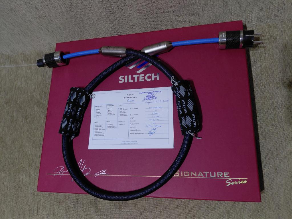 Siltech Ruby Hill II G7 Royal Signature high end silver-gold audio power cable. Very good condition with normal fine traces of use. The length is 1,5 M. The cable has original Furutech connectors (FI-E50R, FI-50R) installed. Serial number is SG00625292. The original box and documents are included. Retail price is 2800 euro. Price 1600 euro. PayPal - Please add 4%.