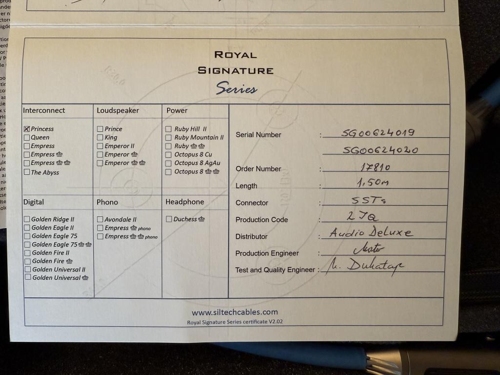 Siltech Signature PRINCESS G7, 1,50m, RCA, OVP -BLACK SALE!!!-