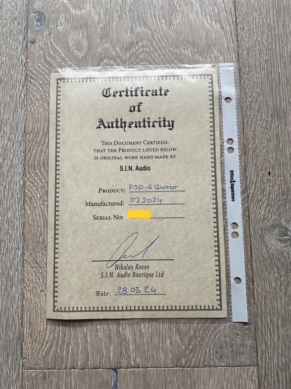Manufacturer: „One of the best high end audio power distributors on the market, the S.I.N. Audio PSD-6 Ghost. Unlike other active power treatment solutions that can limit dynamics and sound energy, S.I.N. Audio’s power distribution products offer a natural sound that has been described by audiophiles as “the most natural” they have ever experienced. S.I.N. Audio’s products are designed using the company’s patented technologies, which involves carefully selecting natural materials, the best possible components, and employing proper assembly techniques to eliminate vibration, EMI, and RFI. This results in products that provide exceptional sound quality, with incredible dynamics, sound energy, and natural resolution.“ Small marks of typical usage on bottomside.