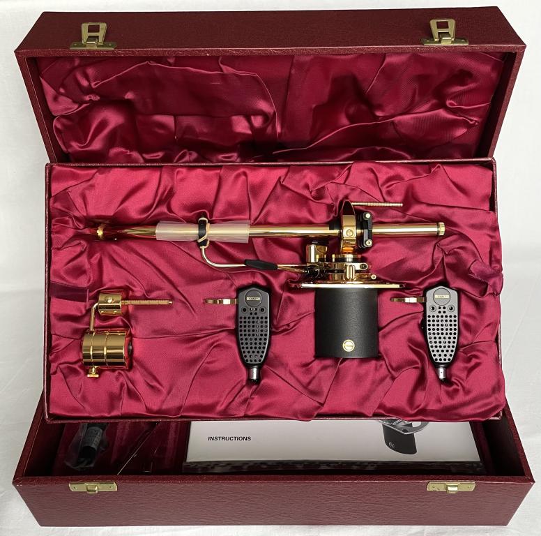 I'm selling a complete rare 24-Carat Gold plated Tonearm SME 3009-RG Limited Edition ser.nr.:154 as pictured including Fluid Damper with complete accessories. Tonearm has a medium effective mass (12.7g) ideal for a wide range of cartridges, whether MC or MM. Never installed, in such beautiful condition and also the original box in the same condition (please see all photos).