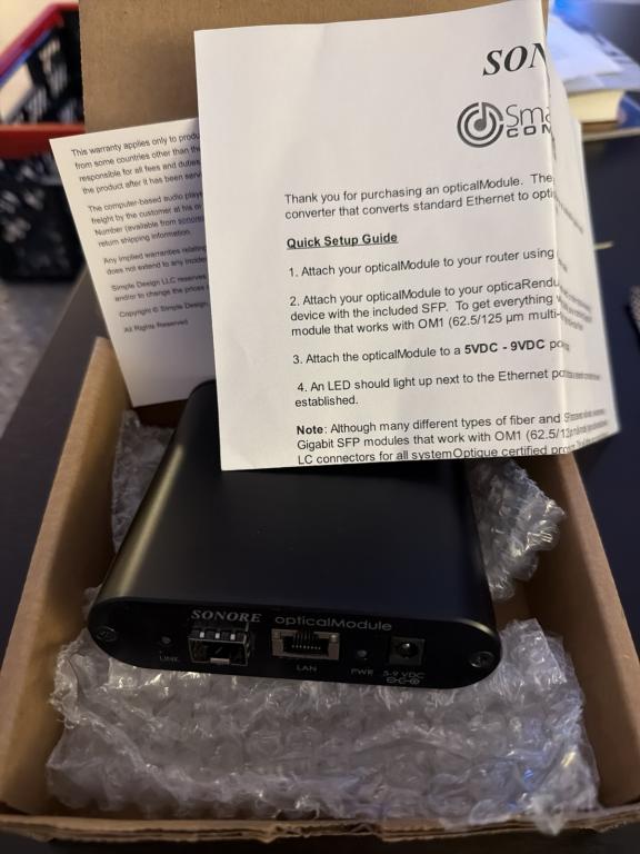 Ich verkaufe ein Sonore Optical Module Deluxe V2. Es kostet neu 600€. Jetzt gibt es den Konverter für 200€. Bitte alle Fragen vorher stellen. Es ist kein Netzteil dabei. Am besten sind 7V Netzteile. Es ist kein SFP Transceiver dabei, nur der Sonore Optical.