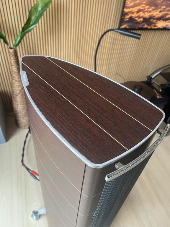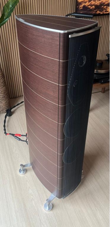 Visually, the speakers stand out with their distinctive shape, refined Wenge wood finish, and high-quality aluminum and leather details. Auditions are possible by appointment, and collection is preferred. Ideally, the system will be sold as a complete set.