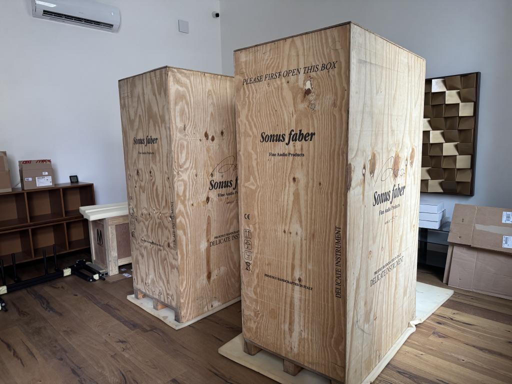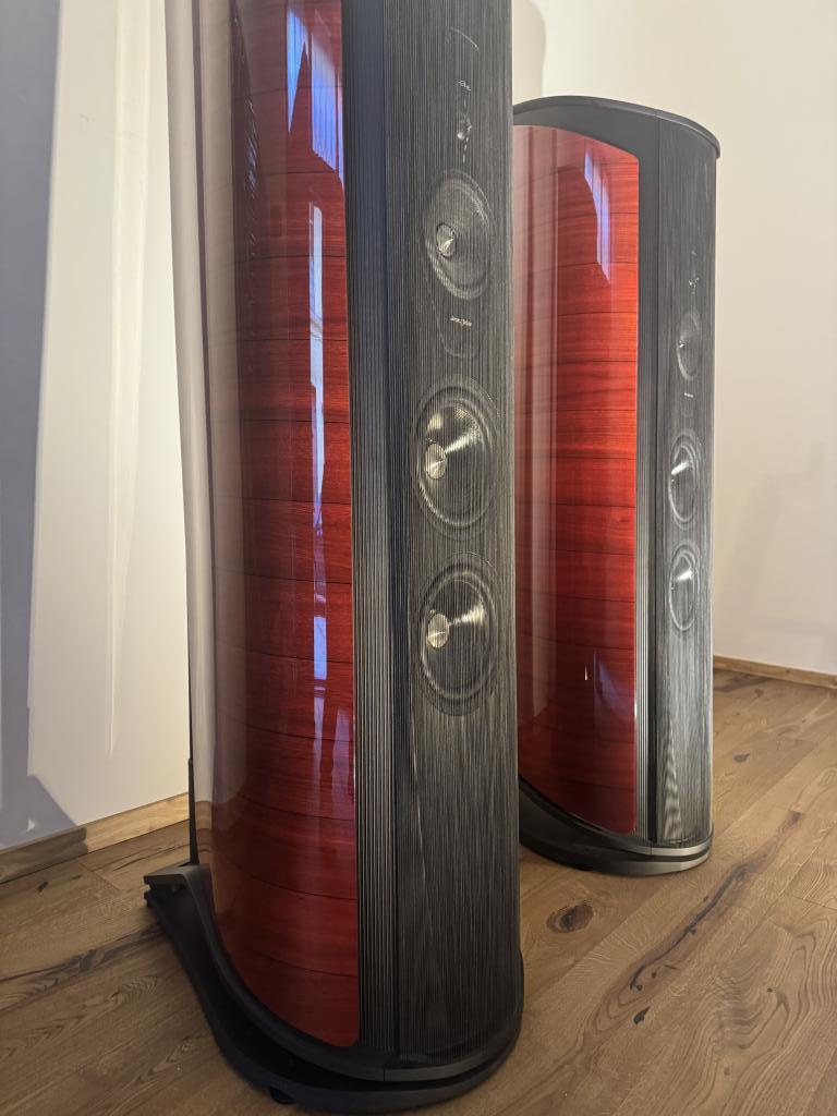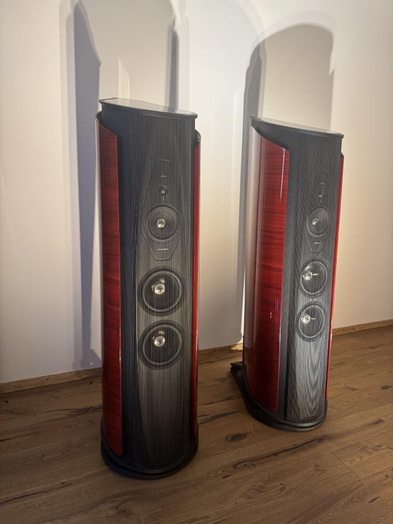 The speakers are sold as ex-demo in the most beautiful red color. With full warranty.
