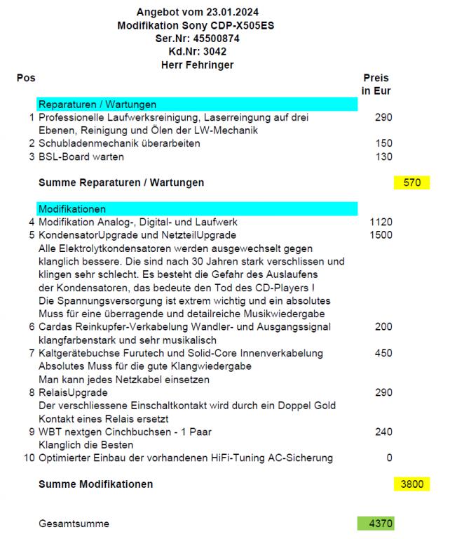 Hier eine sehr seltene Gelegenheit, einen komplett modifizierten Swoboda Audio Sony CDP-X505ES CD-Player zu bekommen, fast neu da erst vor wenigen Monate komplett revidiert!