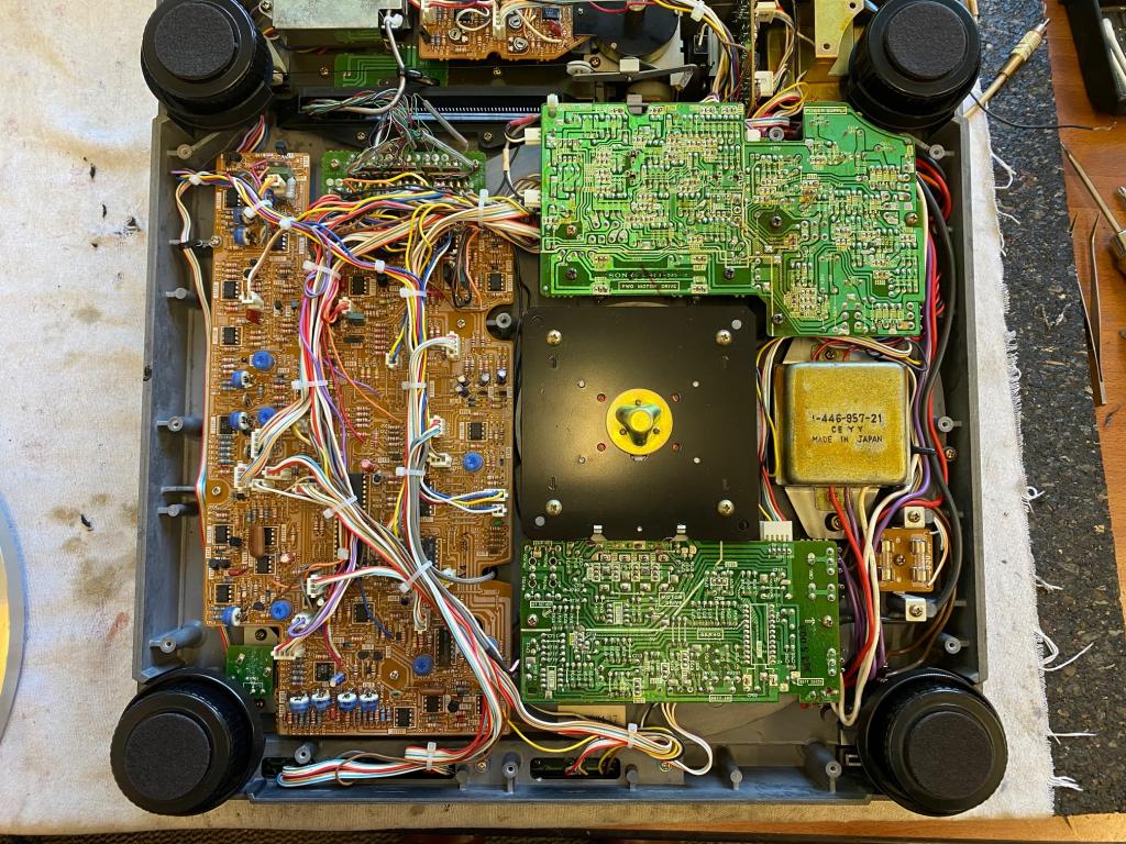 Wir haben uns mit Schaltung und Aufbau dieses Plattenspielers intensiv und über einen langen Zeitraum beschäftigt und beherrschen sie jetzt. Die computergesteuerte Elektronik und die Mechanik stehen zueinander in einem diffizilen Gleichgewicht, und es können selbst bei perfekter Verpackung (wir sind Hersteller von Röhrengeräten, die in die ganze Welt verschickt werden) durch einen Versand Funktionsstörungen entstehen, die wir leider schon bei einem Gerät erleben mussten, das nach Italien verkauft war. Der Plattenspieler wird deshalb auschließlich zur Selbstabholung angeboten. Wer diese klassische Preziose besitzen möchte, wird auch eine längere Anfahrt in Kauf nehmen, zumal er sich von der perfekten Funktion hier vor Ort überzeugen kann!
