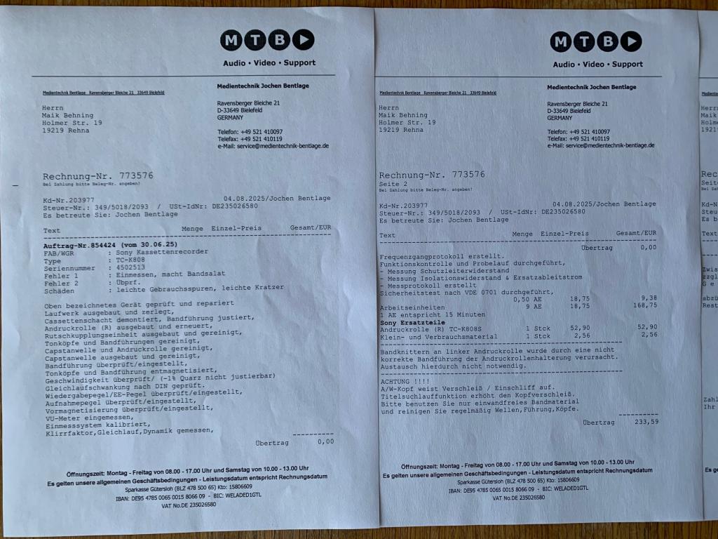 Zum Verkauf steht ein voll funktionsfähiges High End Kassettendeck von Sony aus dem Jahre 1995. Es ist hochwertig gefertigt, verfügt über ein robustes Laufwerk und wurde in 2025 einer vollständigen Revision durch einen Fachmann unterzogen (siehe Rechnung).