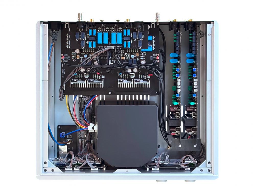 Durch die Vollsymmetrische, rückkopplungsfreie Phono-Equalizer-Schaltung (MC/MM) in Twin-Mono-Auslegung klingt sie sehr natürlich und musikalisch und bietet maximale Impulstreue.